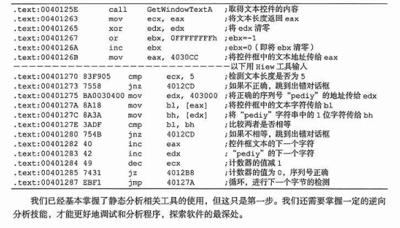 这个例子的算法核心内容就是将用户输入的序列号和参照值比对。