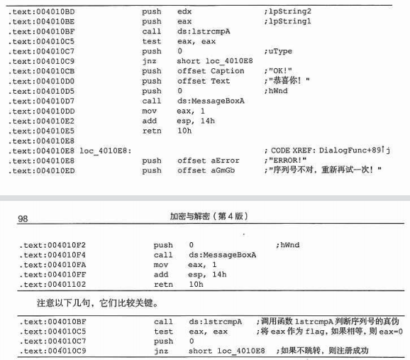 这个例子的算法核心内容就是将用户输入的序列号和参照值比对。