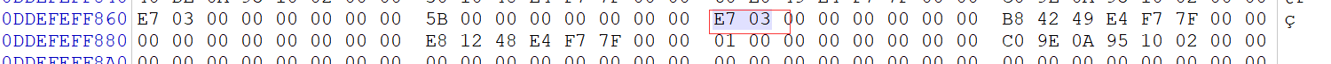 可以看到这个程序的这个数据在内存中的形态。