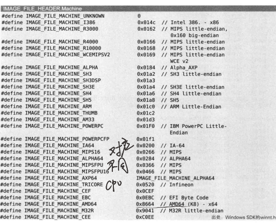 主要是machine字段值发生变化,pe32为014c,pe32+为8664