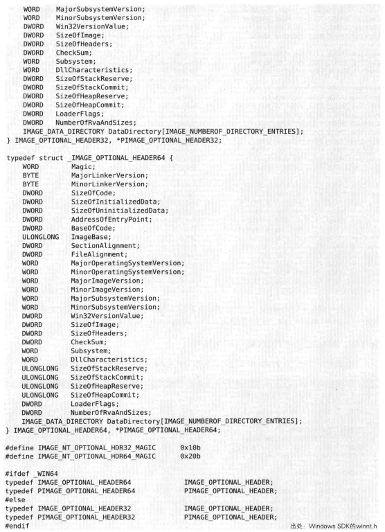 这个作为标志位发生变化,32中是010b,32+为020b,windowsPE装载器通过检查这个字段的值来区分他是32位还是64
