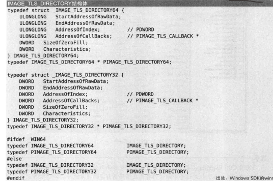 IMAGE_TLS_DIRECTORY结构体的startaddressofrawdata,endaddressofrawdata,addressofindex,addressofcallbacks字段持有的值都是VA值,所以他们也被扩展为64为中需要的8个字节。