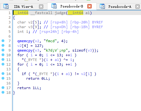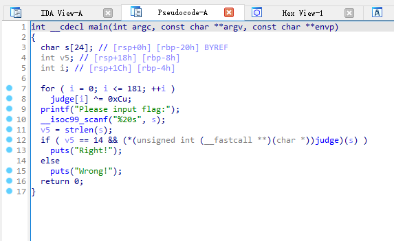这个judge如果是个数组,那就是数组首字母加地址,完全不明白。看了别的师傅的wp,才明白这里做了一个花指令,出题人在地址前作了混淆。