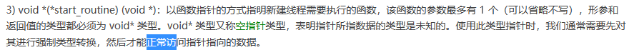 第一个参数是用来表示一个线程,第二个手动设置线程的属性,第三个我们穿的参数进去要调用什么函数,第四个使我们穿的参数。其中细节就是第三个,我直接上图