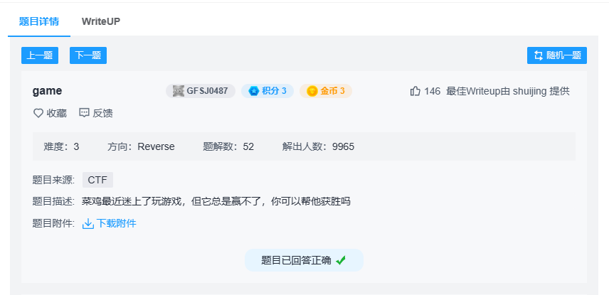 #题目 #解法一 开始做的时候没思路,直接硬玩,玩出来了。 Previous 【攻防世界逆向】Insanity详解难度3 Next 【攻防世界逆向】open-source详解难度3 CATALOG FEATURED TAGS 【Crackme】 【逆向】 【CTF】 【IDA PRO权威指南】 【读书笔记】 【NSSCTF】 【UNCTF】 【加密与解密】 【白帽子讲web安全】 【web】 【安全学习之路】 【逆向工程核心原理】 【攻防世界】 【技术研究】 【Android】 【Android应用安全实战:Frida协议分析】 【Android进阶解密】 【Ollvm】 【壳】 【Android源码】 【Android改机】 FRIENDS 博客园 哔哩哔哩 网易云