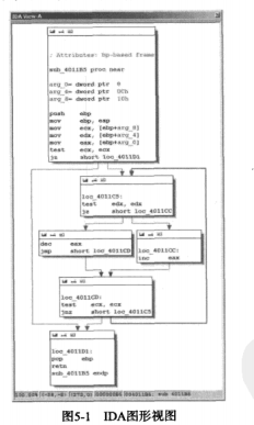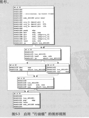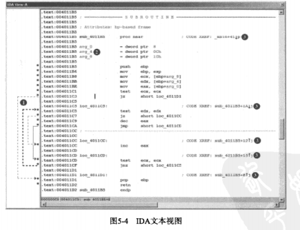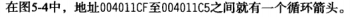 这里的①是箭头窗口,虚线是条件跳转,实线是非条件跳转,如果有一个跳转将程序的控制权交给地址某个之前的位置,会使用粗线,通常表示一个循环