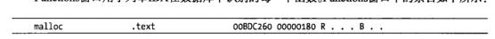 这一条信息指出 在二进制文件虚拟地址为00BDC260的.TEXT部分找到malloc函数 函数长384字节 返回调用方R并使用EBP寄存器B,引用它的局部变量。