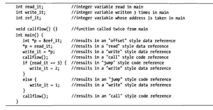 指令用于调用函数,如❸处的x86ca11指令,它分配到一个调用流( call flow),表示控制权 被转交给目标函数。多数情况下,ca11指令也分配到-个普通流,因为大多数函数会返回到ca1l 之后的位置。如果IDA认为某个函数并不返回(在分析阶段确定),那么,在调用该函数时,它 就不会为该函数分配普通流。调用流通过在目标函数(流的目的地址)处显示交叉引用来表示。 ca1lflow函数的反汇编代码清单如下所示: