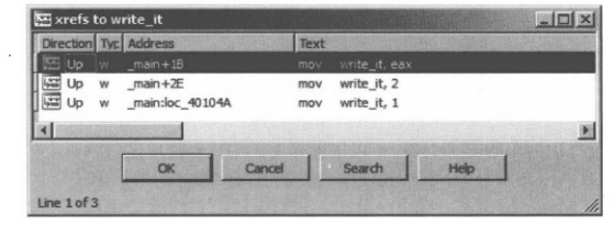 第二种方法是突出显示一个感兴趣的名称,在菜单中jump jump to xref打开一个对话框,列出了引用选中符号的每个位置