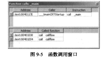 指令用于调用函数,如❸处的x86ca11指令,它分配到一个调用流( call flow),表示控制权 被转交给目标函数。多数情况下,ca11指令也分配到-个普通流,因为大多数函数会返回到ca1l 之后的位置。如果IDA认为某个函数并不返回(在分析阶段确定),那么,在调用该函数时,它 就不会为该函数分配普通流。调用流通过在目标函数(流的目的地址)处显示交叉引用来表示。 ca1lflow函数的反汇编代码清单如下所示: