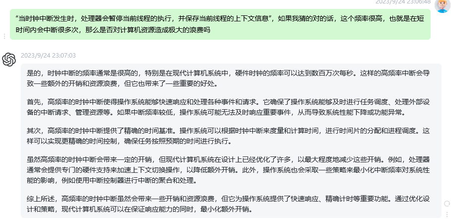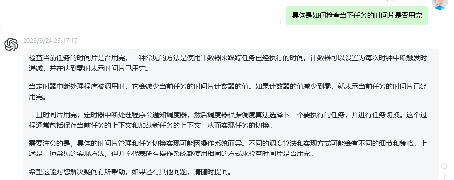 - 在计算机的硬件时钟当中不停地出发时钟中断,每次时钟中断都会将控制权交给操作系统内核的定时器中断处理程序,这是一个特殊的中断处理程序,他负责处理时间相关的操作,比如任务切换和时间片的管理。